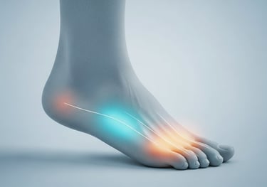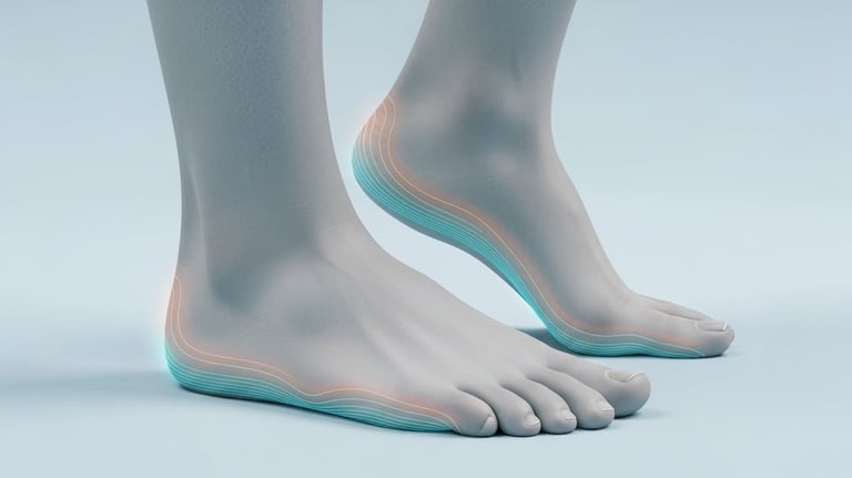 As dores nos pés geralmente são consequência de alterações na pisada, sobrecargas e desequilíbrios biomecânicos.