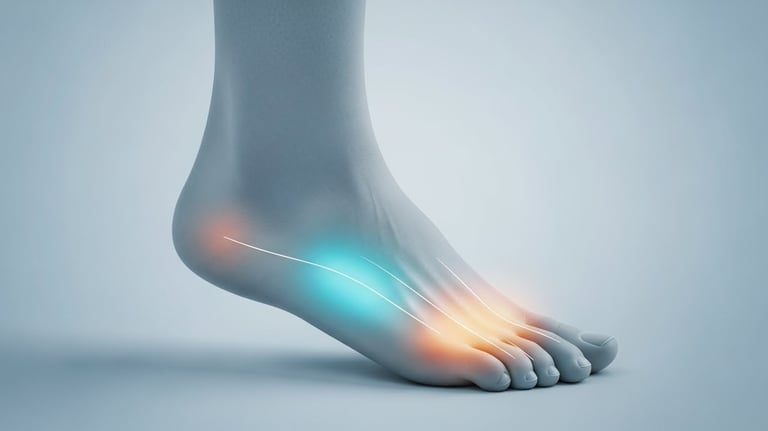 Desconfortos estruturais causados por sobrecarga localizada, geralmente associados a padrões inadequados de apoio e propulsão do pé.